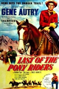 Western Movie of The Day – Last of the Pony Riders starring Gene Autry, Dick Jones and Smiley Burnette. Just click on the western movie poster to be taken to this western movies page then scroll down until you see the video.